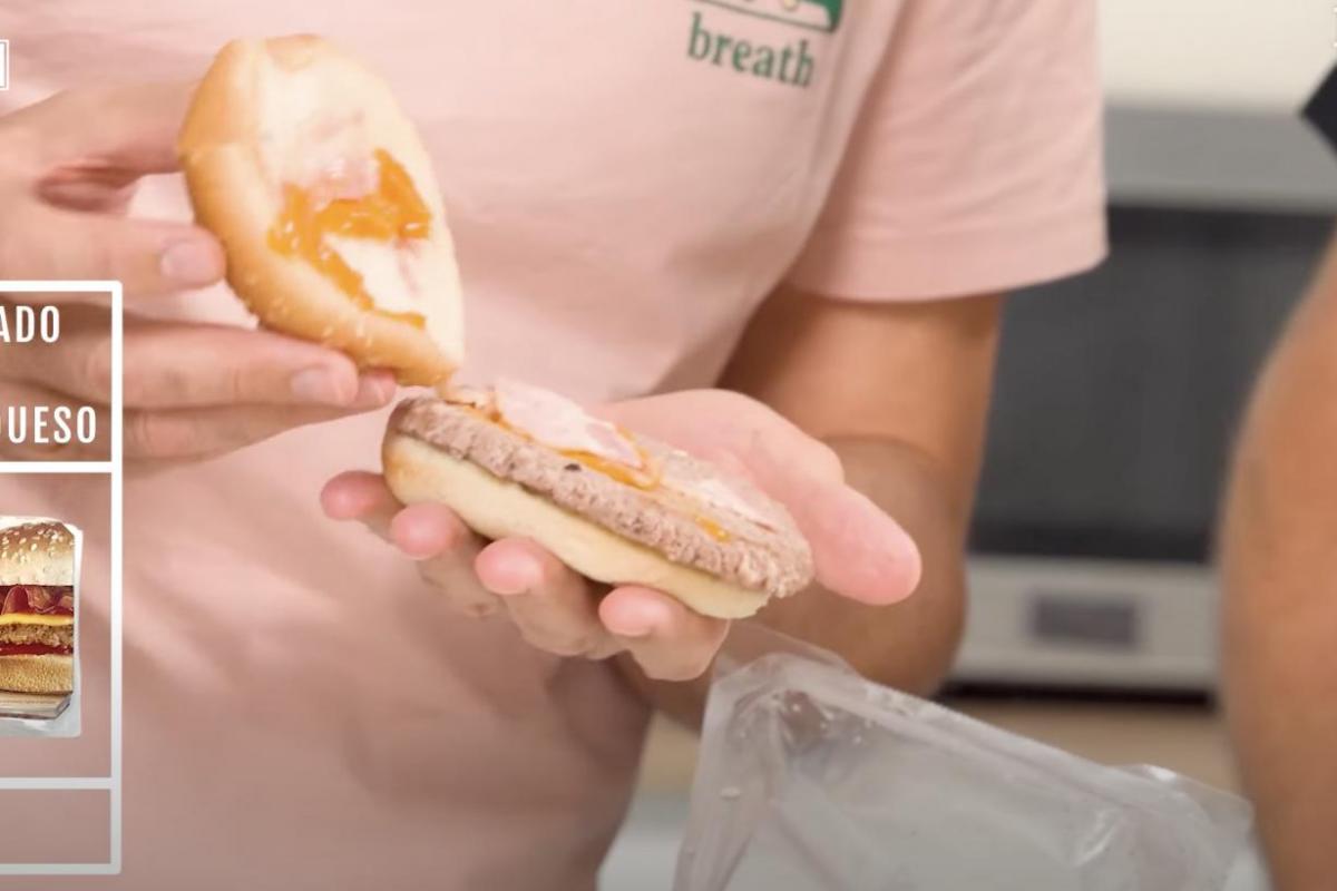 Al abrirla han descubierto los trozos de bacon "que se ven como casi crudos". "Esto no puede ser comida" y "debería ser ilegal" ha añadido el experto. "El queso es un insulto al queso", ha apostillado Iturriaga. "Se pega a tu paladar. El pan está mejor que el último pero es como una esponja", ha comentado White.