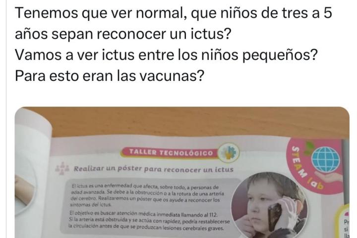 Además, esta mujer ha señalado que si la razón por la que los menores de cinco años tengan que saber identificar un ictus es porque ahora va a haber más ictus en esa franja de edad por las vacunas.
