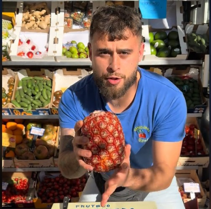El usuario de TikTok @fruterotiktokero, un joven que gestiona junto a su padre una frutería de Madrid, ha publicado un vídeo en su cuenta de la red social probando una exótica piña por la que se está llegando a pagar hasta 500 euros.