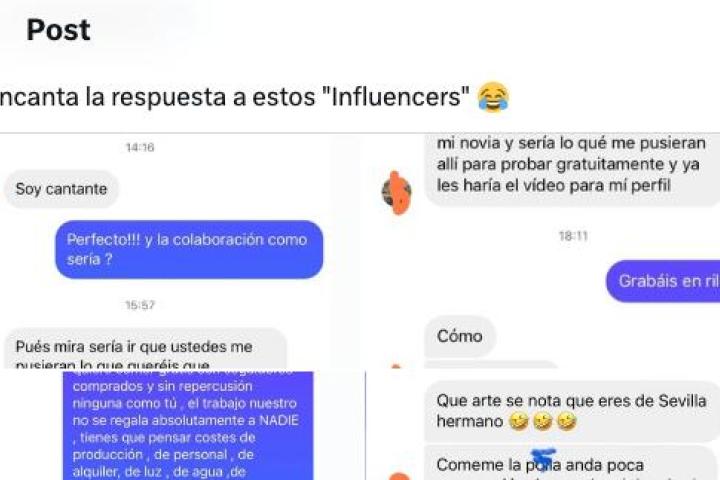 En esta ocasión el influencer en cuestión ha escrito a un bar para saber si están dispuestos a hacer una colaboración ya que él es cantante. Cuando el hostelero pregunta por la colaboración en cuestión éste dice básicamente que en comer gratis.