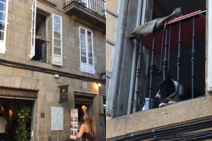 Un Border Collie en Santiago se ha vuelto viral después de ser captado por un usuario de TikTok, en una publicación que ya acumula más de 1,5 millones de 'me gusta' y 217 mil 'me gusta', jugando con los viandantes de la calle Rúa do Franco con una pelota a través de su ventana.