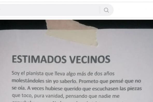 Un pianista se entera de que molesta a sus vecinos y les deja este memorable cartel: "Todo un genio"