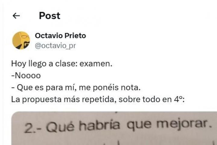 El profesor Octavio Prieto, @octavio_pr en X, ha provocado un debate en esa red social al compartir el comentario más repetido que le han hecho sus alumnos en una pregunta.