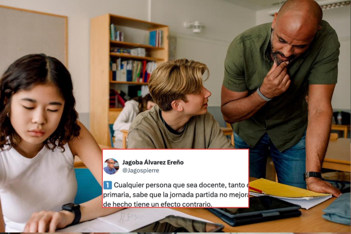 Y el profesor le da la razón: "Acaba de explicar el verdadero problema: los horarios de las jornadas laborales, son estos los que convierten a los centros escolares no en centros escolares, sino en lugar para aparcar a los niños".