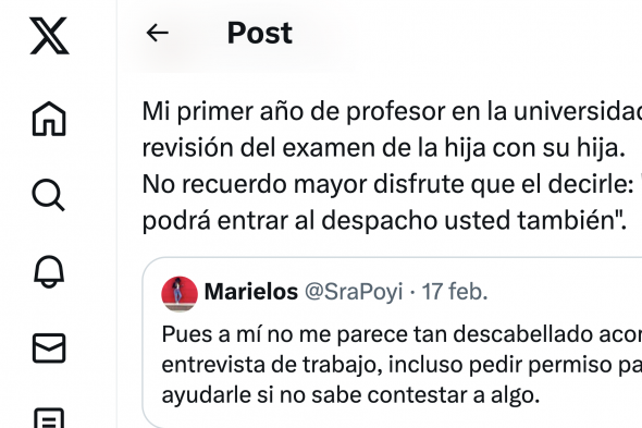 En las últimas horas se ha viralizado en X, anteriormente Twitter, la publicación de un docente contando lo que le pasó con la madre de una alumna. Todo a raíz de otro mensaje que ha sido el que ha desatado la polémica en la red social de Elon Musk.