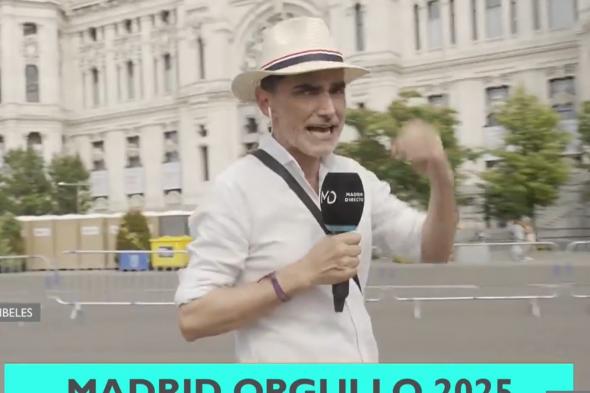 En plena retransmisión del Orgullo, el reportero del programa Madrid Directo, Jesús Cosano, se encontraba en la plaza de Cibeles, frente al Ayuntamiento de Madrid.