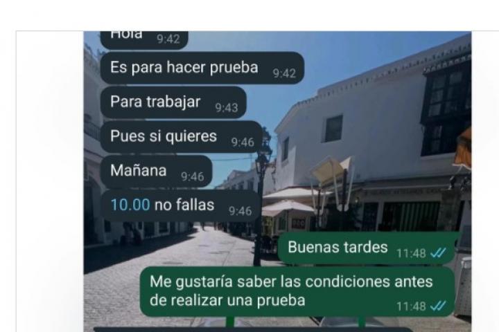 "Hola, es para hacer la prueba para trabajar. Pues si quieres, mañana. 10.00 no fallas", se ve que dice el empresario en unas capturas de pantalla que ha subido a las redes sociales la popular cuenta @soycamarero.