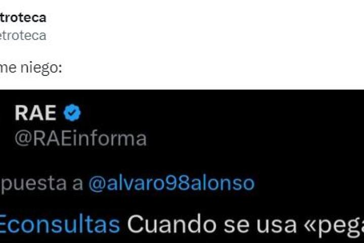 Esa publicación ha sido rescatada por un usuario de la red social, y que parece no estar muy de acuerdo con la aportación de la RAE a este respecto. Así @laletroteca, se ha mostrado totalmente en contra de la Academia: "Lo siento pero me niego", han sido sus palabras, que fueron acompañadas de una captura con el mensaje de la RAE.