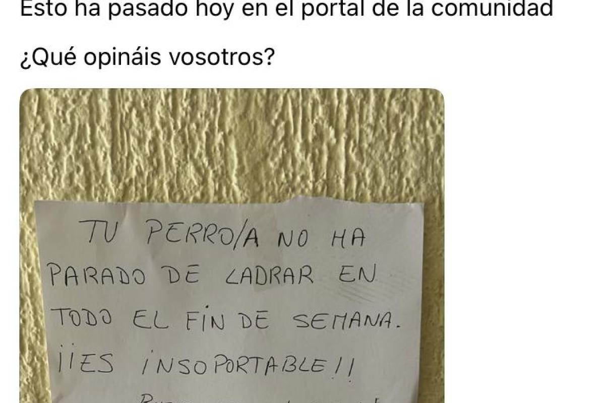 La respuesta que un vecino le ha dado a otro, que se quejó a través de una nota porque su perro ladra mucho, está difundiéndose sin parar hasta el punto de convertirse en uno de los temas más comentados en las redes sociales en los últimos días.