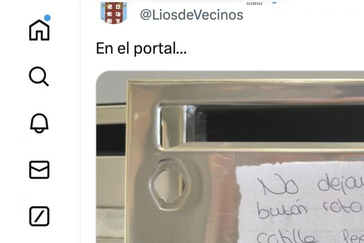 Ahora, esta misma cuenta ha publicado el mensaje que un vecino le ha dejado al cartero y donde ha aludido directamente a otro propietario. Escrito a mano y pegado al buzón se puede leer: "No dejar cartas. Buzón roto y vecino cotilla lee mis cartas y las entrega cuando le apetece".