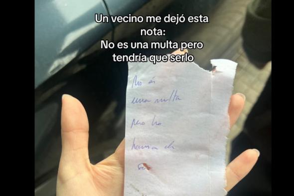 El último ejemplo lo ha dado la usuaria de TikTok @carolbell9, que ha mostrado el sumamente borde letrero que le dejó un vecino enganchando del limpiaparabrisas de su coche: "No es una multa, pero debería serlo".