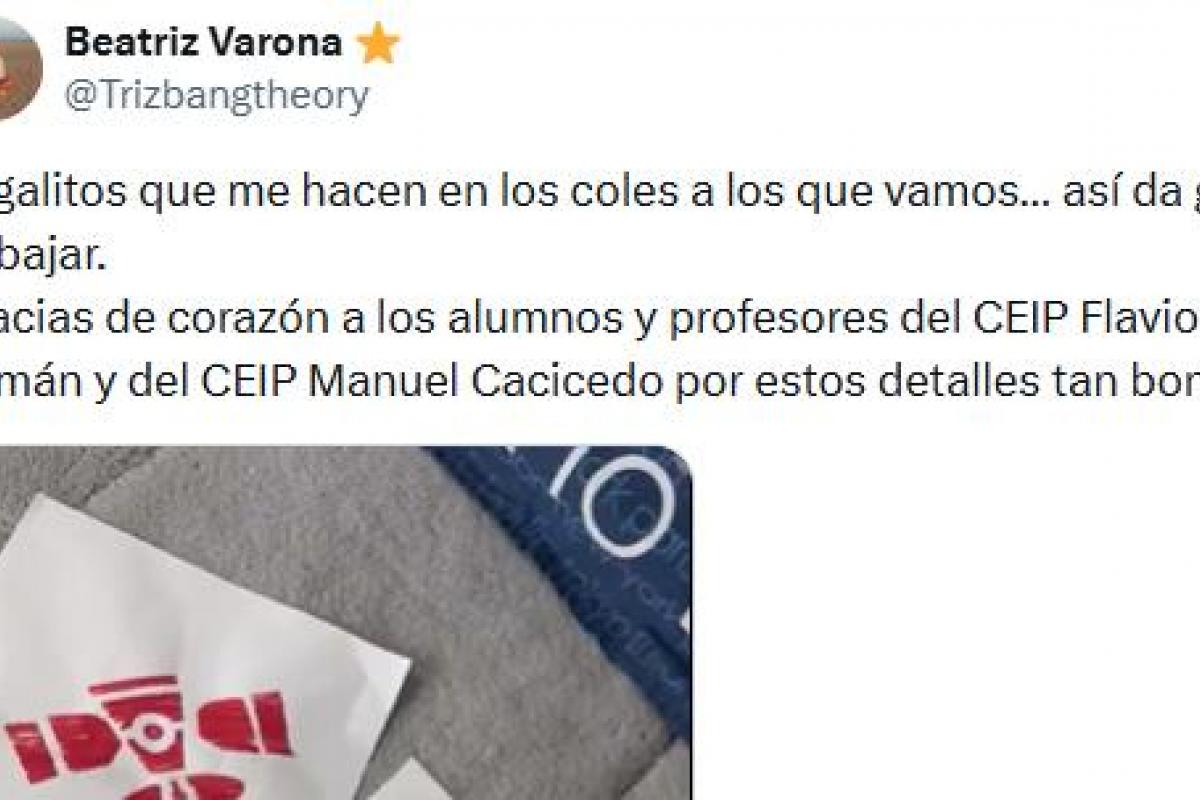 La astrónoma, astrofísica y divulgadora de contenido Beatriz Varona ha compartido en su perfil de X los regalos que ha recibido de estudiantes tras visitar dos colegios de educación infantil y primaria de Cantabria.