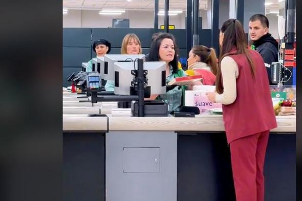 Una cajera del Mercadona conquista a una clienta, se lleva la sorpresa del día y la cara de su compañera de caja lo dice todo
