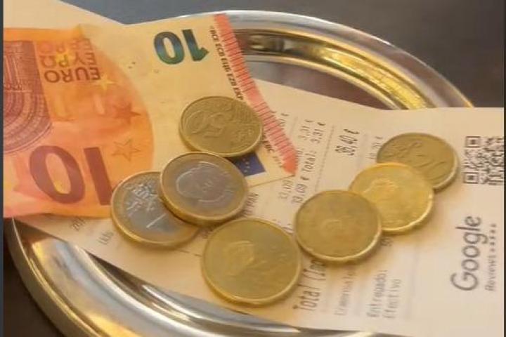 "Van a tener que dejar 60 céntimos de propina", ha asegurado la camarera, muy segura de la eficiencia de su táctica. "Seguro que dejan todo esto de propina", ha añadido, señalando las cuatro monedas de céntimos, una de 50 y otras tres de 20.