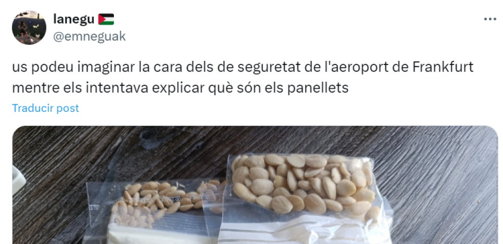 Ante el desconcierto del personal de seguridad del aeropuerto, la usuaria ha relatado que tuvo que intentar explicarles a los trabajadores alemanes que se trataba de ingredientes para hacer panellets caseros, un tradicional dulce otoñal catalán.
