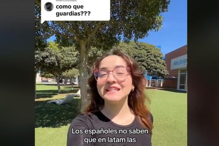"Muchísima gente no entendió por qué en Latinoamérica las universidades tienen guardas, así que yo os enseño", ha expresado en el vídeo, que cuenta con más de 13.300 'me gusta.