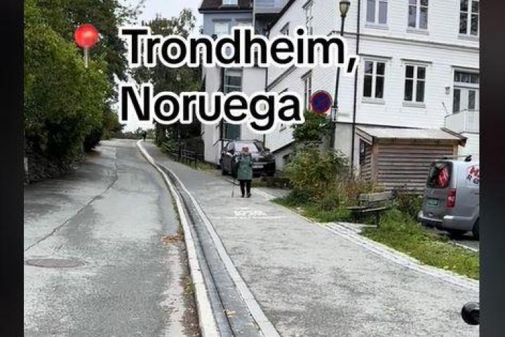 Se trata de un mecanismo ubicado en una calle larga y empinada de la ciudad de Trondheim y usado para no tener que subir dando pedales.