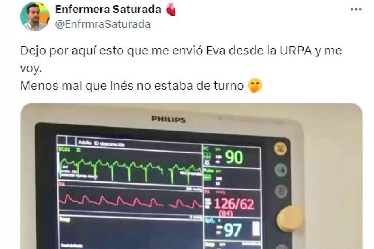 "Menos mal que Inés no estaba de turno", ha bromeado el enfermero para concluir el tuit que ha recibido más de 200 'me gusta' en apenas una hora.