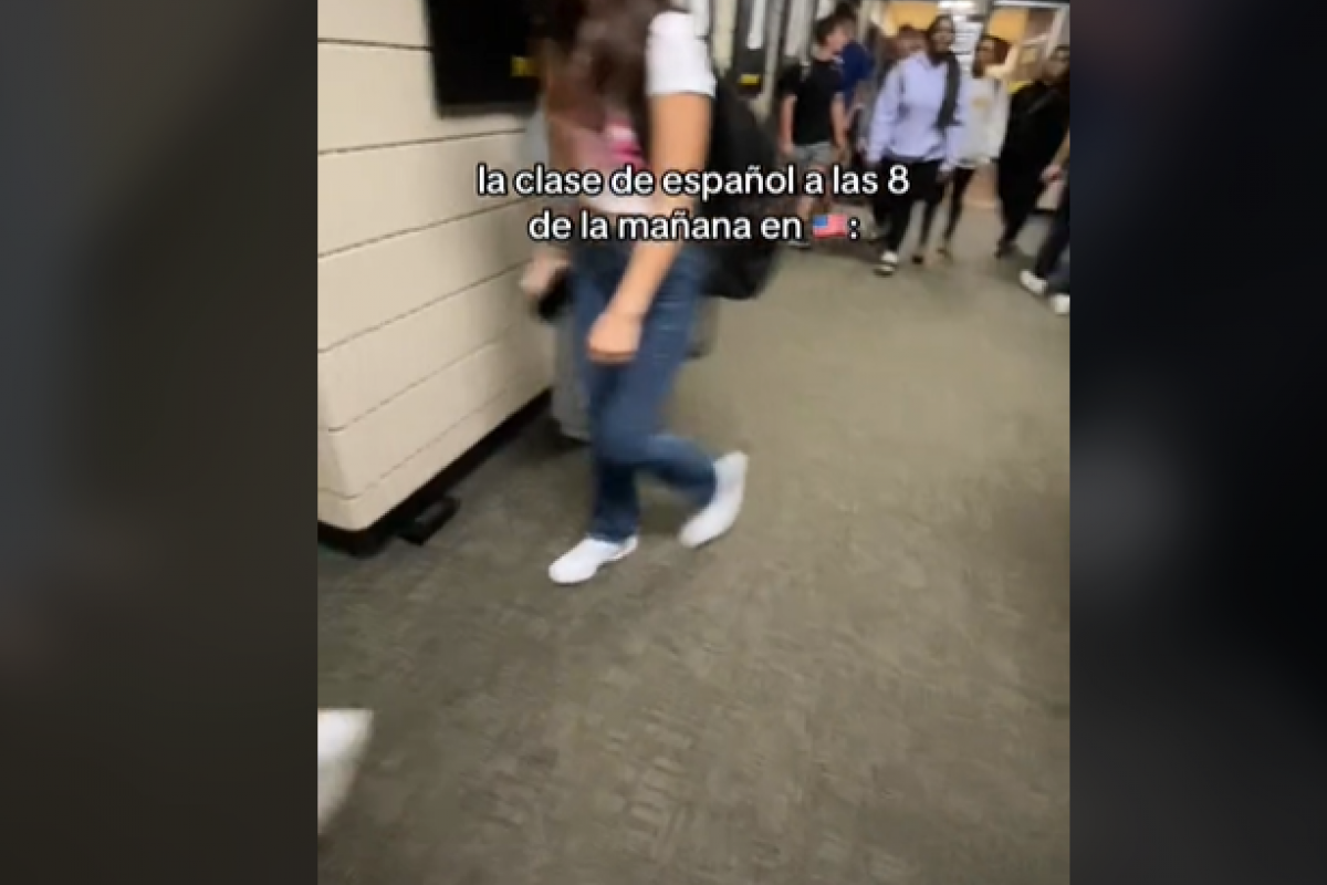 La usuaria de TikTok @user617523456 ha publicado un vídeo en la red social en el que se pueden ver los pasillos de una universidad norteamericana en la que cruzan y pasan multitud de jóvenes de un lado hacia otro.