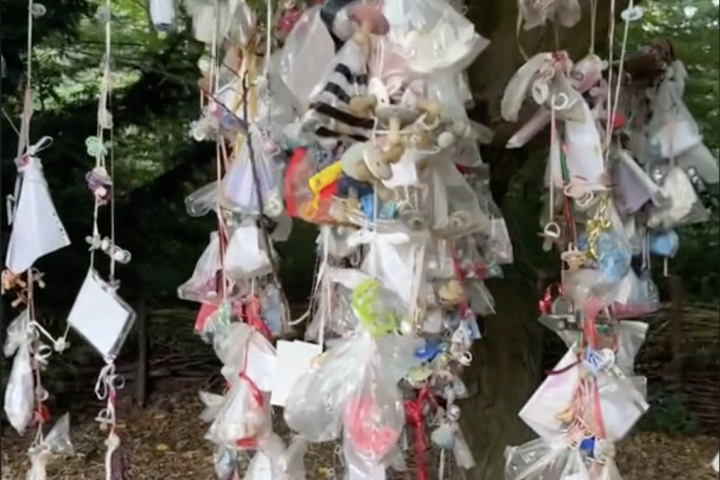 En un parque de la zona, @carlaverahuerta ha descubierto la "extraña tradición" que le ha dado de primeras mucho miedo. "Me está contando Elena que aquí cuando los niños ya no usan los chupetes vienen aquí al Fredericks Park... esto da mucho mal rollo", dice antes de mostrar un árbol lleno de chupetes colgados.