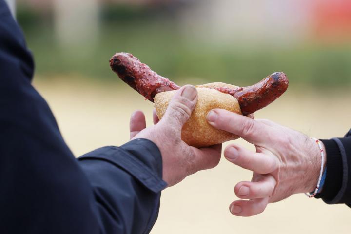 "Y esto es lo que se considera un perrito caliente en Australia", ha dicho a continuación al tiempo que enseñaba una salchicha metida en un pan de molde a modo de sándwich acompañado de kétchup y cebolla.