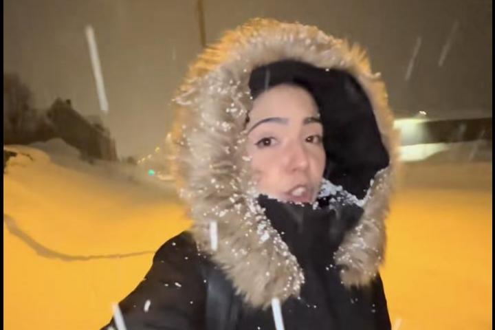 El vídeo lo ha grabado paseando por en medio de la nada, rodeada de nieve y granizo cayéndole en la cara: "Mirad cómo está todo. Todo blanco. Llevo sin ver el sol un par de días, tenemos día pero el sol está detrás de las nubes. Llevo sin recibir sol en mi cuerpo más de cuatro meses. Estoy más blanca que Blancanieves".