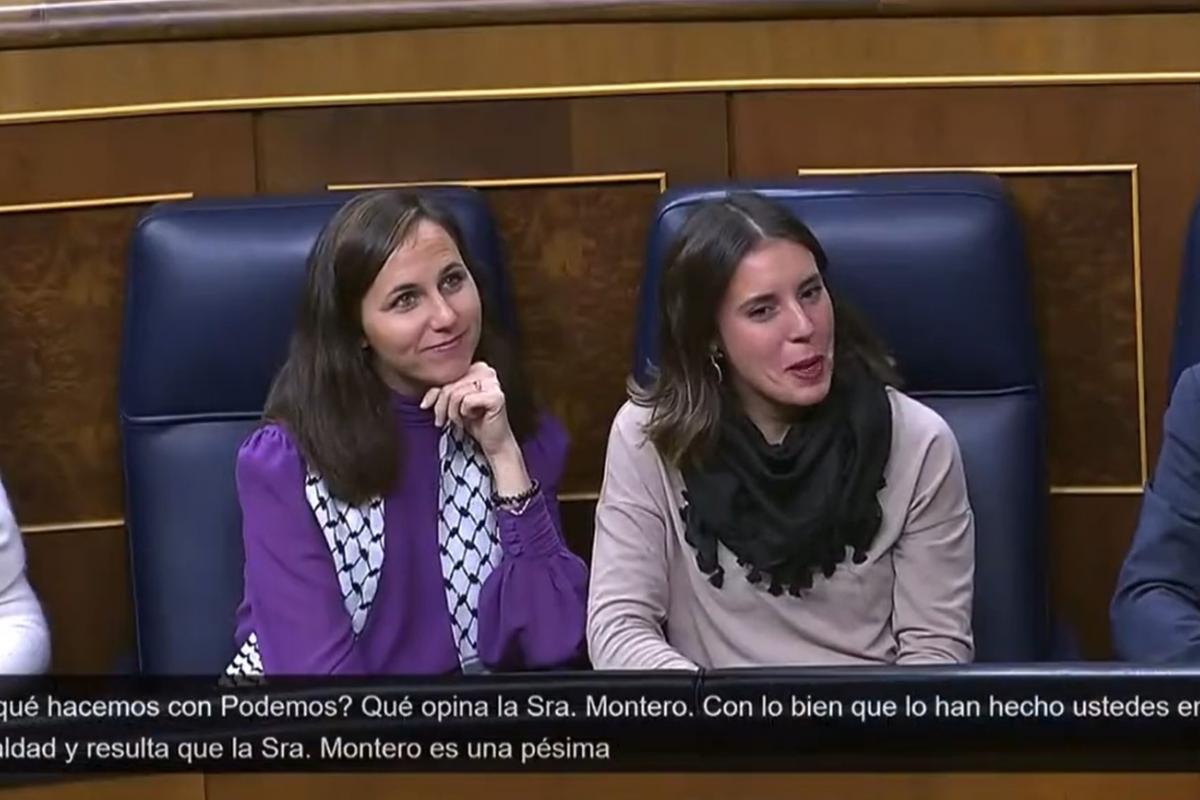 En ese momento, las cámaras han enfocado a Irene Montero y a la líder de Podemos, Ione Belarra, que han hecho unos gestos muy expresivos.