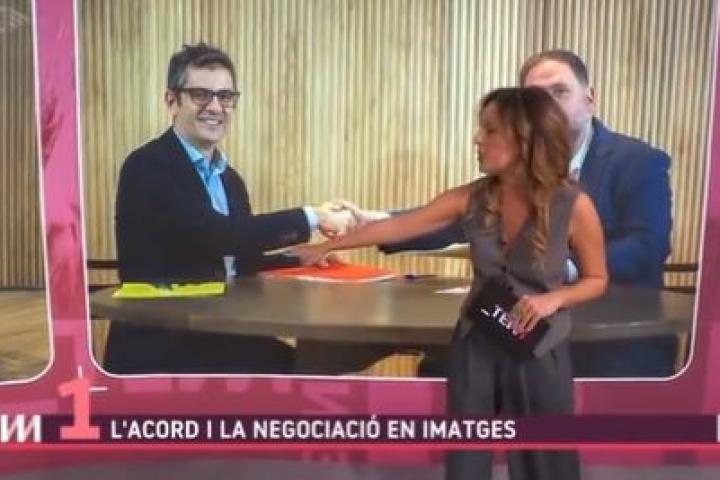 Se trata de la imagen protagonizada por el ministro de Presidencia en funciones, Félix Bolaños, y el líder de Esquerra Republicana de Cataluña, Oriol Junqueras.
