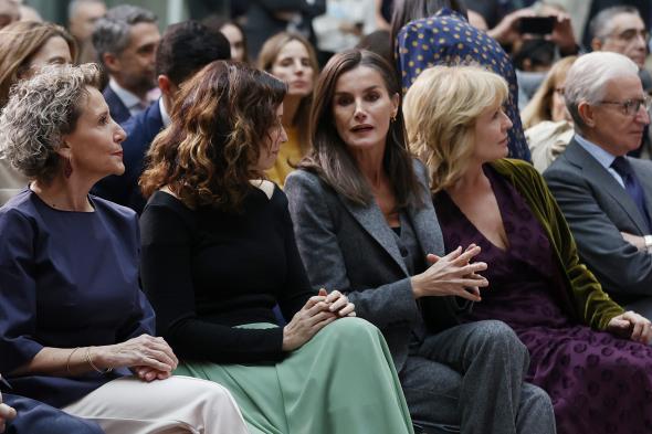 Durante su discurso, Ayuso se ha dirigido directamente a Letizia: "En primer lugar, Majestad, decirle que es un honor recibirle aquí en la Real Casa de Correos, en la sede del Gobierno de la Comunidad de Madrid, en esta edición de los Premios de Periodismo de la Asociación de la Prensa de Madrid".
