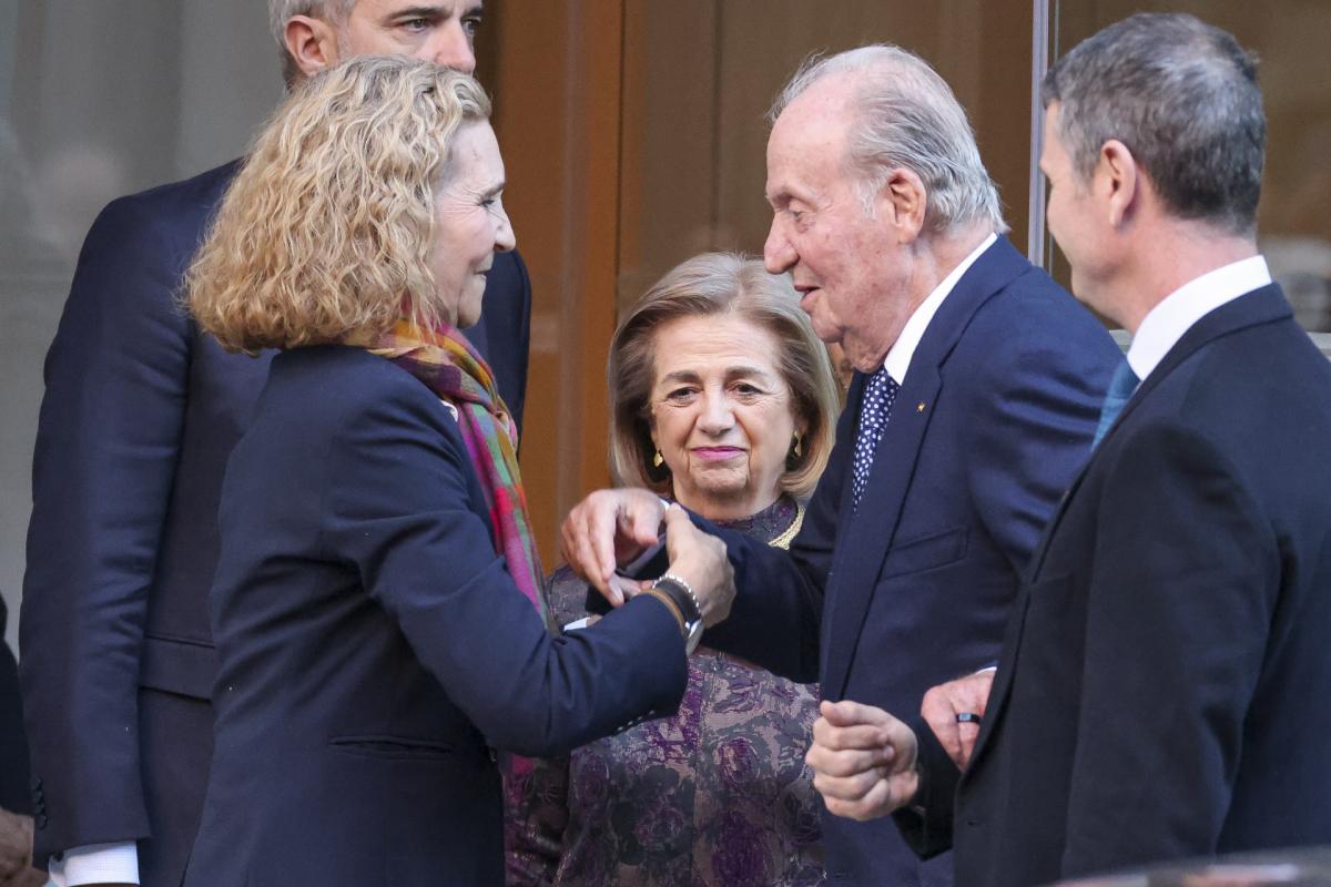 Este miércoles se han reunido, con motivo del cumpleaños de la infanta Elena, que ha cumplido 60, los reyes, Felipe VI y Letizia, y los eméritos, incluido Juan Carlos, que ha volado desde Abu Dabi para la ocasión, entre otros muchos invitados de la Familia Real.