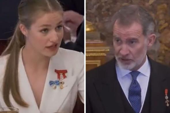 La princesa Leonor y su padre, el rey Felipe VI, han protagonizado un llamativo momento que han captado perfectamente las cámaras al inicio del almuerzo en el Palacio Real con motivo de la jura de la Constitución de la heredera.