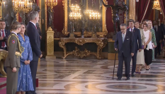 Los primeros en pasar por el besamanos han sido los miembros del Gobierno de coalición, con Pedro Sánchez a la cabeza, y con el resto de ministros y ministras detrás.
