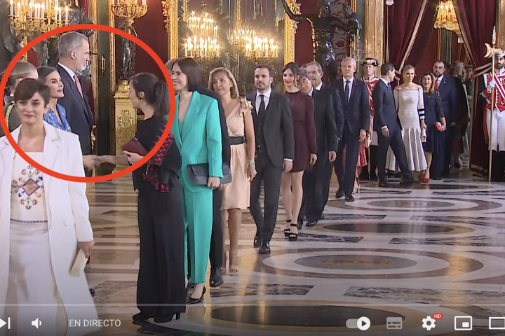 "Con la única que se detiene Letizia en el besamanos es con Ione Belarra, quien lleva un pañuelo con bordados palestinos", ha señalado Centeno.