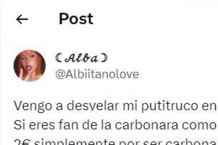 "Vengo a desvelar mi putitruco. Si eres fan de la carbonara como lo soy yo, te cobran un suplemento de 2€ simplemente por ser carbonara", ha empezado señalando para explicar por qué lo hace.