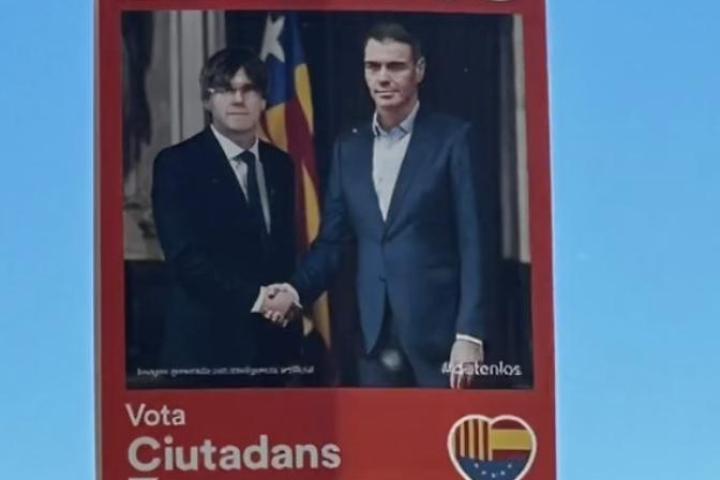 Ella le explicó que era un cartel de Ciudadanos —partido que ha sido barrido del mapa electoral de Cataluña y que ha cosechado menos votos que Pacma— y les contó quiénes eran Sánchez y Puigdemont.