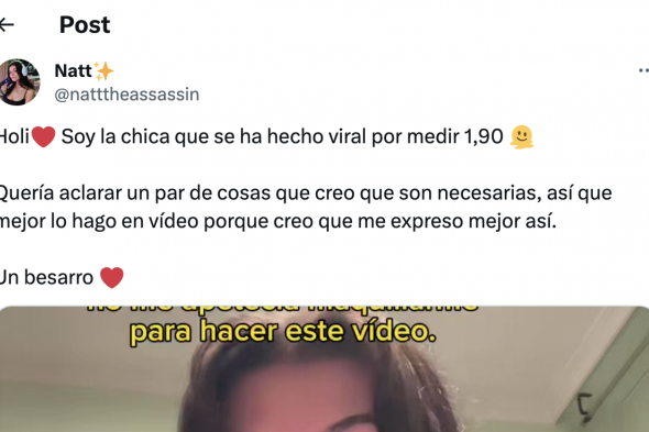La usuaria de X, antes Twitter, natttheassassin, se hizo viral hace unos días por su respuesta a un usuario que decía en una publicación que "las mujeres de 1,70 o más no deberían existir".