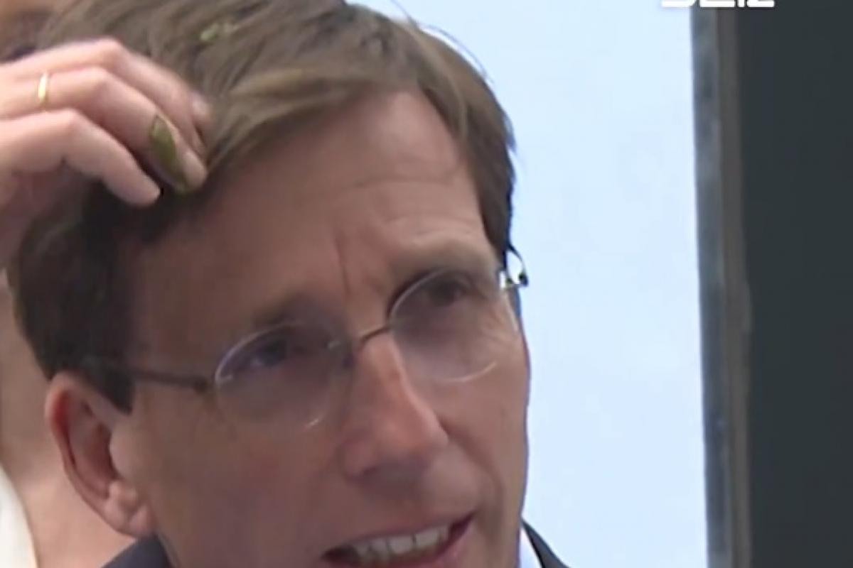 El alcalde de Madrid se lo ha tomado con humor, pero el momento pasará directamente a su archivo particular, entre los que se encuentran otros como los sendos pelotazos a un niño y a un fotógrafo durante otros actos públicos.