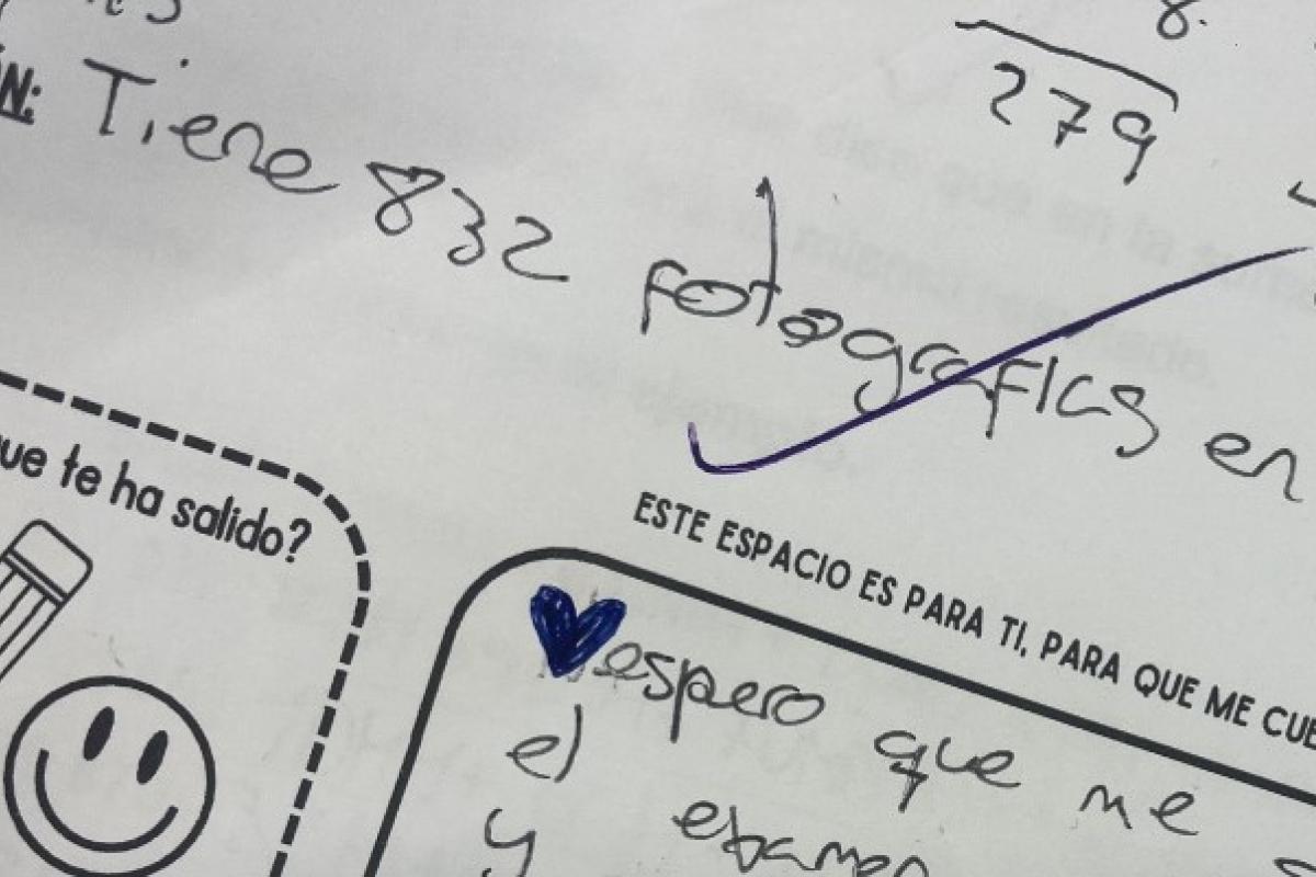 En las imágenes ha publicado algunos ejemplos de los que habla. Al final de los exámenes, deja a los niños un recuadro para que le cuenten lo que quieran.