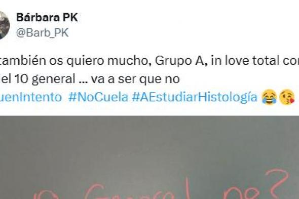En un mensaje redactado con tiza se puede ver como primero le piden por un 10 general para toda la clase del grupo A para después, y en un recuadro, escribirle un "nosotros queremos a Bárbara y Celia" dibujando un corazón.