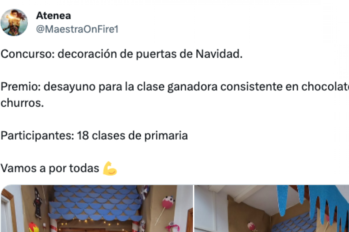 La profesora de Primaria y usuaria de X, la red social anteriormente conocida como Twitter, Atenea (@MaestraOnFire1) ha compartido la iniciativa que han tenido en su colegio para celebrar la llegada de la Navidad y hacer la espera de las vacaciones mucho más amena.