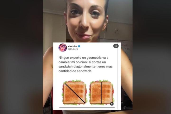 "Ningún experto en geometría va a cambiar mi opinión: si cortas un sándwich diagonalmente tienes más cantidad", ha escrito 'El Rubius' en la red social X, antes conocida como Twitter.