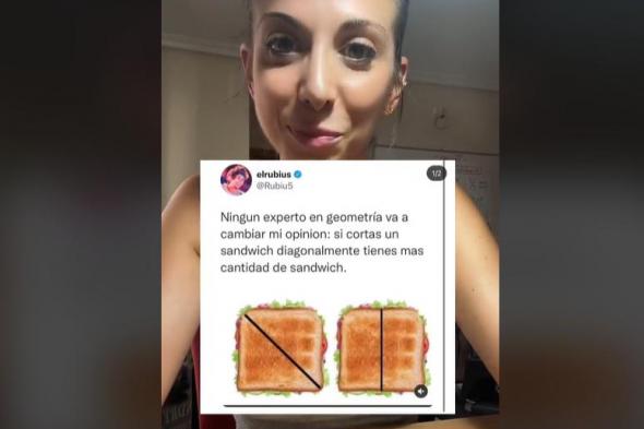 "Ningún experto en geometría va a cambiar mi opinión: si cortas un sándwich diagonalmente tienes más cantidad", ha escrito 'El Rubius' en la red social X, antes conocida como Twitter.