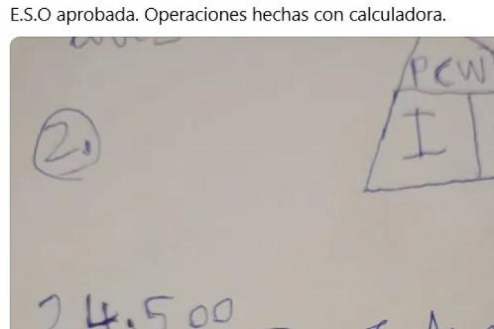 Una operación matemática que ha hecho un alumno que tiene la ESO aprobada en un examen ha provocado la preocupación y el debate en las redes sociales, con usuarios alarmados por lo que se ve en ese papel y otros que llaman a la comprensión.