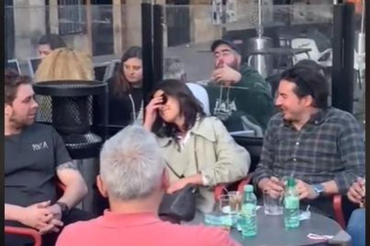 Para colmo, sus amigas estaban escondidas grabándolo todo y no sólo las personas de la mesa sabían lo que pasaba, sino que "el restaurante y toda la plaza de Logroño estaban compinchados".