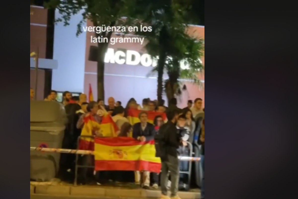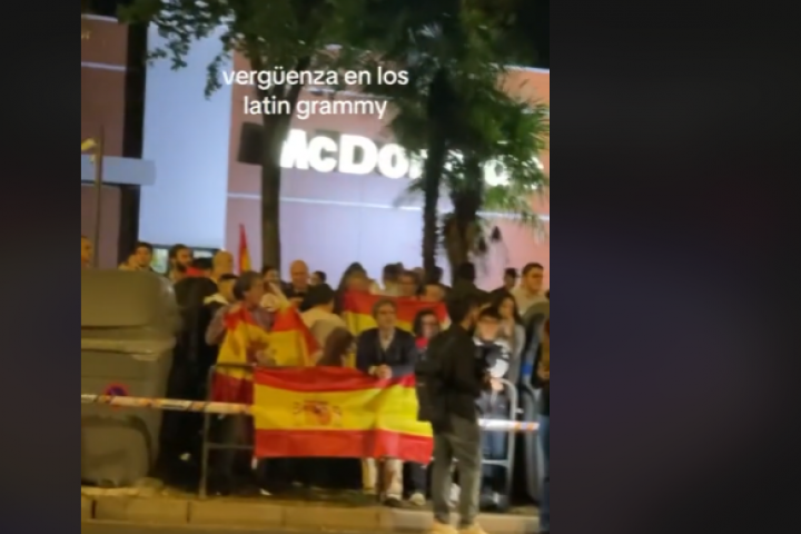 Una 'tiktoker' enseña la realidad de la protesta contra Sánchez frente a los Latin Grammy en Sevilla