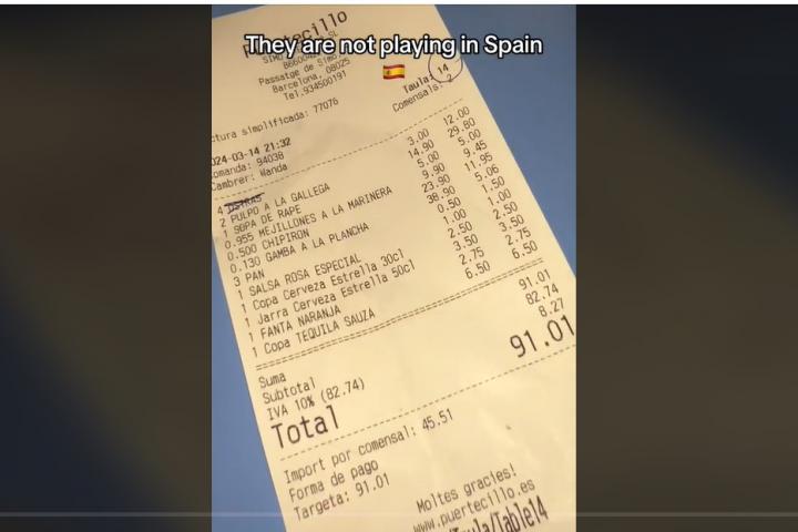 Según se desprende de su publicación, ella y sus acompañantes, que son extranjeros, querían tomar un chupito de tequila. La sorpresa llegó cuando les sirvieron algo bien distinto y les cobraron en consonancia.