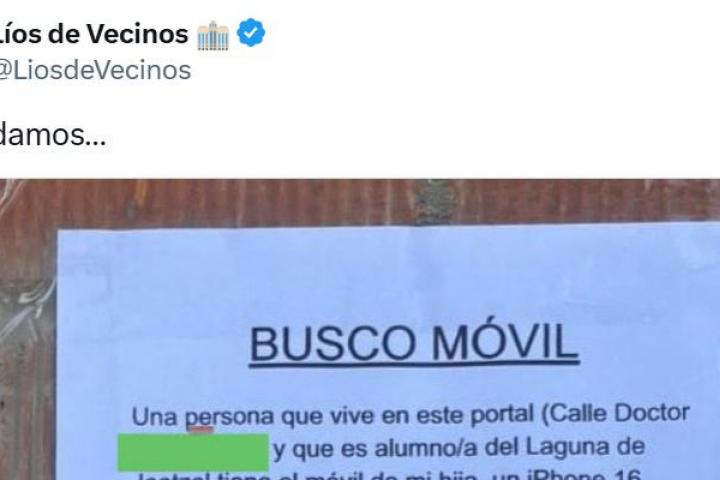 La popular cuenta de X @LiosdeVecinos ha difundido en su perfil de esta red social el mensaje que han dejado unos padres en un portal de una comunidad para intentar recuperar el móvil que había perdido su hija.