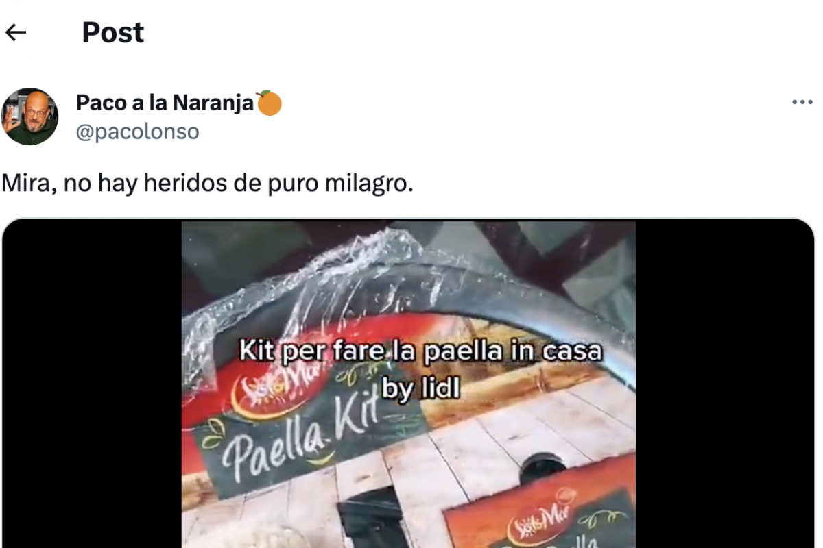En TikTok, un usuario italiano ha publicado un vídeo que rápidamente se ha viralizado en X, anteriormente Twitter, elaborando una paella valenciana, con un kit que ha comprado en la semana española de Lidl y que ojo, viene hasta con la paellera incluida.