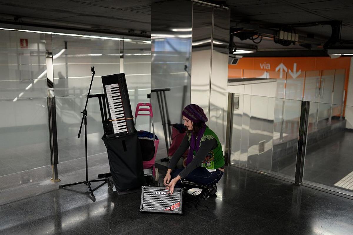 Para ella, "es el Operación Triunfo del Metro de Barcelona". De hecho, la imagen muestra una pequeña fila de dos jueces que son los que escogen quiénes sí y quiénes no podrán tocar y cantar en aquellos túneles.