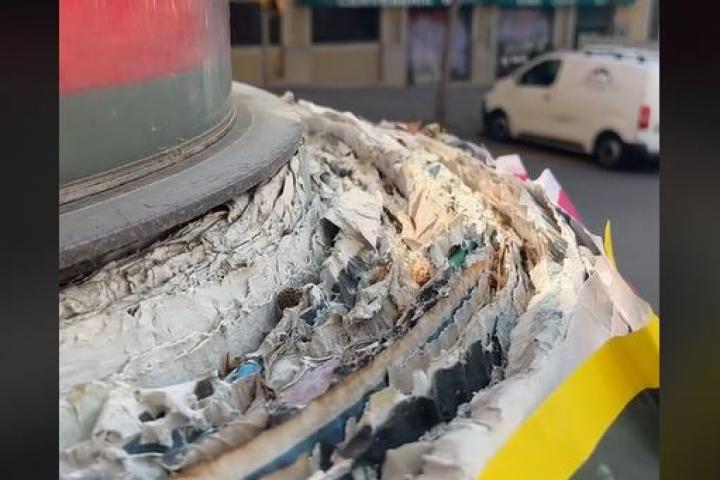 El usuario de TikTok @elrafadetiktok ha publicado un vídeo mostrando todos los panfletos que se han acumulado a lo largo de los años en una columna.